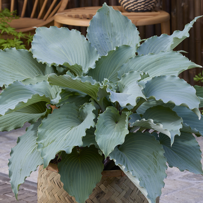 These elegantly ruffled, blue-green leaves with a white reverse are held on stunning purple stems, adding vibrant color and texture to shade gardens. The upright, vase-shaped plants can grow up to 4' wide and bear lavender flowers above the foliage in summer. Zones: 3-8. Ht: 15-18". BR