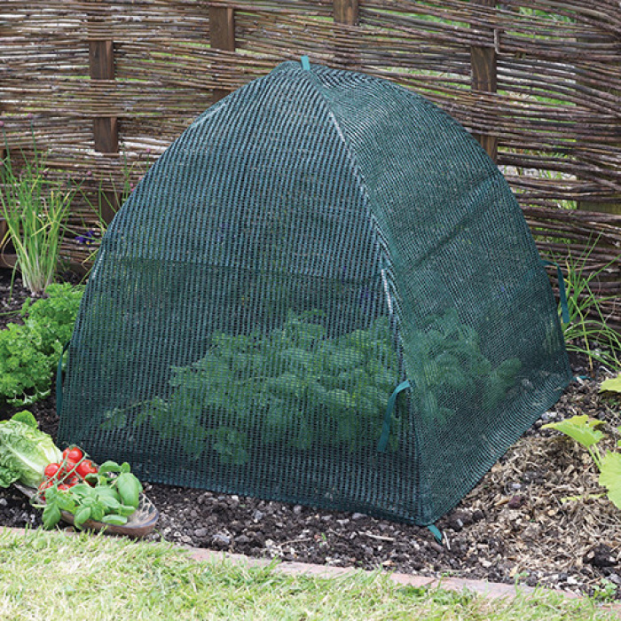 These easy-to-use pop-up covers protect against weather, animals and pests, yet permit the exchange of air, moisture and sunlight. Rust-proof, galvanized steel hoops hold the fabric off the plants and ground pegs anchor it in the soil. Both measure 22"H x 22"W x 22"D. Provides protection from intense sunlight and helps retain soil moisture. Constructed from UV-stabilized, high-density 5mm mesh polyethylene.